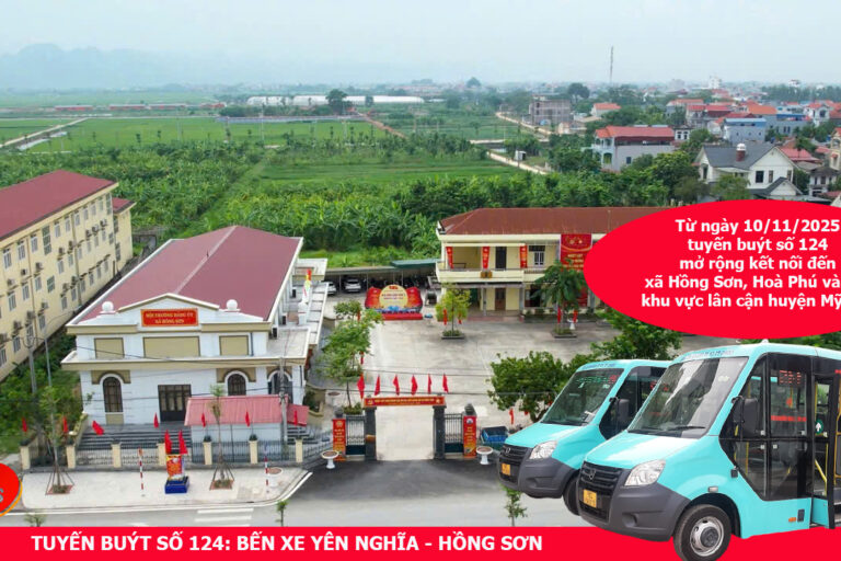 Từ ngày 10/11/2025, Tuyến buýt số 124 theo lộ trình mới, mở rộng kết nối đến xã Hồng Sơn, Hoà Phú và các khu vực lân cận huyện Mỹ Đức